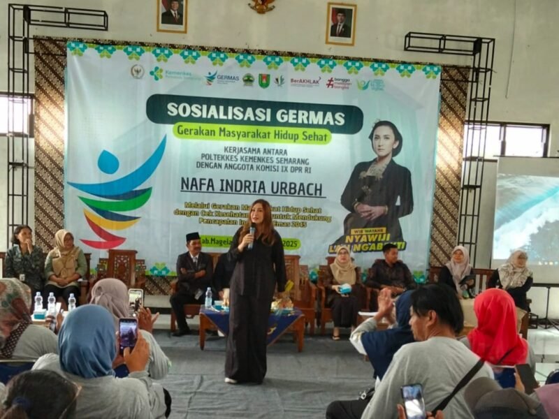 MAGELANG | MEDIA 08 – Anggota komisi IX DPR RI Nafa Indria Urbach menggelar sosialisasi gerakan Masyarakat Hidup Sehat (GERMAS) bekerjasama dengan Poltekkes Kemenkkes Semarang pada Kamis (28/8/2025) bertempat di balai desa Mangunsari Kecamatan Sawangan Kabupaten Magelang.